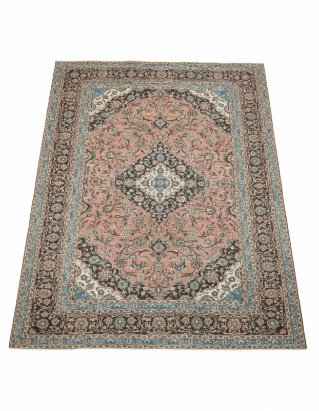 Handmade Persian Chocolate Peach Vintage Kashan Rug – 8’2″ x 10’7″